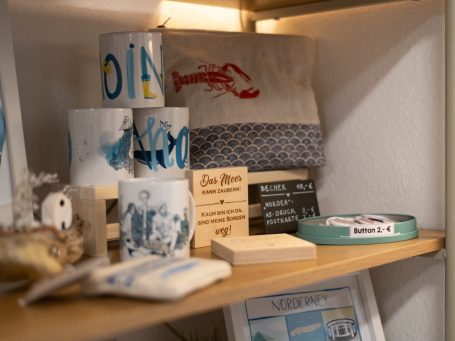 Wir sind „We & Sea“, ein kleiner Laden im Herzen von Norden, geführt von zwei Kunsthandwerker*innen.